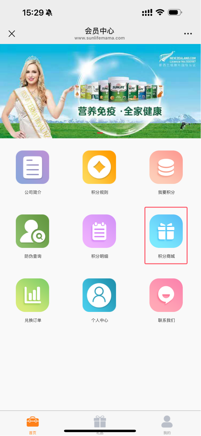 在会员中心页面找到“积分商城”,进入便可自行选择心仪的礼品兑换啦~